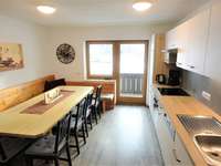Alle Wohnungen sind gemütlich eingerichtet und haben eine große Küche mit SAT-TV, Geschirrspülmaschine, E-Herd mit 4 Kochplatten und Backrohr, Filterkaffeemaschine, Wasserkocher und einen großen Esstisch.