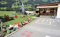 Für die Kleinen ist ein Kinderspielplatz mit Schaukel, Sandkiste, Spielautos sowie Fahrräder vorhanden.