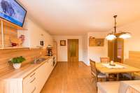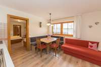Helle Räume, natürliche Materialien und Komfort wie eine Infrarotkabine zeichnen die gemütlichen Ferienwohnungen aus.