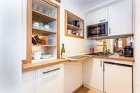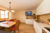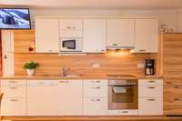 Unsere Appartements sind gediegen und geschmackvoll ausgestattet und verfügen über eine komplett ausgestattete Küche mit Backofen, Geschirrspüler, Microwelle und Kühlschrank, eine gemütliche Sitzecke, Couch sowie Kabel-TV. Das Badezimmer verfügt über Dusche und WC, zwei Waschtische und Fön.