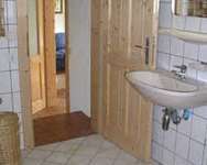 Vorraum, DU/WC und WC extra, Wohnraum, zwei Schlafzimmer: ein Doppelbett- und ein Stockbettzimmer, Sat-TV, Radio, Bücher, Spiele, Bettwäsche, Geschirr- und Handtücher.Ferienwohnung Bauernhaus, 65m², 4-6 Personen