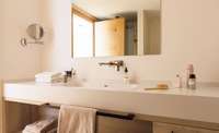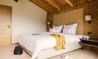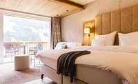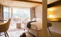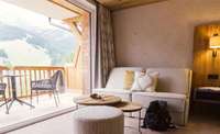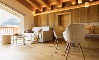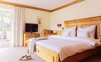Heimisches Lärchenholz sorgt für eine behagliche Atmosphäre in Ihrem Doppelzimmer Rotkehlchen. Ganz besonders gut lässt es sich im gemütlichen Boxspringbett von den Abenteuern des Tages träumen. Auf ca. 30 Quadratmetern bietet das Zimmer außerdem (Schlaf-)Couch, Sat-TV, WLAN, Telefon, Dusche, WC, Kosmetikspiegel, ein großes Panoramafenster und Südbalkon mit Blick zur RohnenspitzeDZ Blaumeise