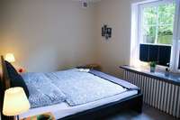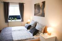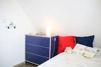 Im Elternschlafzimmer stehen ein Doppelbett (180 cm x 200 cm) und ein Gitterbettchen für ganz kleine Gäste.