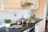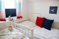Unsere "Herzmuschel" liegt im Erdgeschoß. Sie verfügt über ein Elternschlafzimmer mit Doppelbett (180 x 200 cm), ein Kinderzimmer mit zwei Einzelbetten (90 x 200 cm), ein Duschbad und ein Wohnzimmer mit angrenzender Küchenzeile.Ferienwohnung Austernfischer
