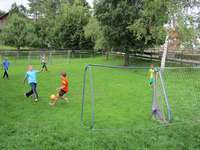 Für die Kleinen: großer Hofraum, viele Fahrzeuge, Tischtennis, Basketball, Riesenschauckel, Spielwiese, viel Platz zum Fußball spielen, mit Trampolin, Baumhaus mit Rutsche und Sandkasten, Spielhütte im Garten zum Basteln, Malen.