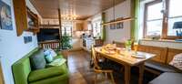Ausstattung: gut ausgestattete Küche, großer Esstisch mit Ecksofa, Elternschlafzimmer ist ausgestattet mit einem Doppelbett, das Kinderzimmer hat zwei große Betten und ein kürzeres Bett mit einer Länge von 1, 60m. Badezimmer mit Wanne und WC, geräumiger Balkon nach Süden mit tollem Blick in die Berge.