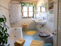 Ferienwohnung "Mohnblume", eine kinderfreundliche Ferienwohnung, liebevoll eingerichtet, mit Ausblick zum Reitplatz, befindet sich im Obergeschoss unseres 1999 neu erbauten Bauernhauses und bietet Platz für 4 Personen. Die Wohnung ist ca. 65 m² groß und verfügt über eine gemütliche und sehr gut ausgestattete Wohnküche mit Eckbank, Sofa, zwei Doppelbett-Schlafzimmern, ein Badezimmer mit Badewanne, Dusche und WC, zusätzliches WC im Flur und einem großen Balkon nach Südosten.