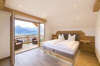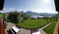 Unsere Doppelzimmer und Ferienwohnungen liegen südseitig (viel Sonne) und haben einen Balkon von dem aus Sie den markanten Kirchturm, den herrlich blauen Wolfgangsee und die umliegenden Berge sehen können.
