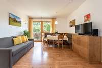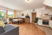 Die Wohnung verfügt über eine voll ausgestattete Küche, einem Wohnraum mit Sofa, SAT-TV, zwei Schlafzimmer (ein Doppelbett- und ein Zweibettzimmer) einem Badezimmer mit Dusche, WC und Balkon. Die Wohnung ist geeignet für 4 bis max. 6 Personen.