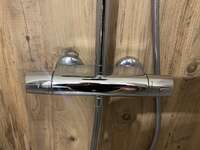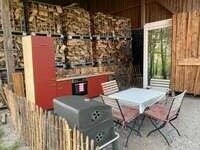 Aussen: Aussenküche, mit 2 Kochplatten, Kühlschrank, Backofen, Warmwasser-Spülbecken. Sanitärcontainer mit Duschbad und WC.