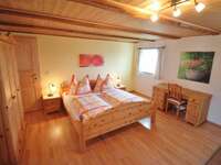Träumen Sie in unserem wahrlich einladenden Himmelbettzimmer mit Vollholzmöbel, Holzboden, Balkon und wunderschöner Aussicht.
