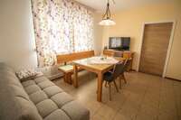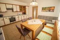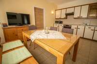 Das großzügige Appartment verfügt über zwei getrennte Schlafzimmer, eine große Wohnküche (mit E-Herd, Backrohr, Micro, Geschirrspüler, Kaffeemaschine), Bad, seperates WC und direkten Zugang zur Sonnenterasse.