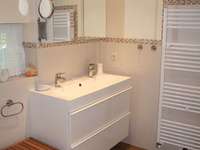 Sie hat vier Schlafräume mit zwei Bädern, eine separate Küche mit allem Komfort, einen großen Wohnraum und eine Terrasse Richtung Bauerngarten mit einer elektrischen Markise über dem Essplatz. Grillen ist hier gut möglich. Eine Kleinkind-/ Babyausrüstung ist vorhanden, eine zweite passt auch noch hinzu, die Wohnung liegt komplett ebenerdig.Wohnung 2 - "Jungbauernwohnung"
