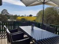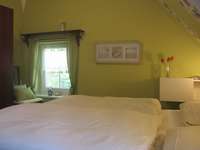 Klassisch hat sie ein Kinderschlafzimmer mit Etagenbett über Eck und Wickeltisch, ein Schlafzimmer mit Ehebett, ein Bad mit echter Badewanne und einen großen Wohnraum mit Flachbild-TV und Essplatz am rustikalen Eichentisch mit Blick in den Bauerngarten! Auf den Balkon passen ein Esstisch und sogar eine Liege. Die Wohnung liegt im so genannten "Altenteil" mit Blick auf das Haupthaus und unseren riesigen Garten.Wohnung 3 - "In der Kate"