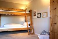 Die Wohnung hat ein Kinderzimmer mit Etagenbett, ein Schlafzimmer mit Ehebett, einen kleinen Flur, ein Bad mit Dusche und einen großen Wohnbereich mit Küche und Essplatz!Wohnung 4 - "Hochseilgartenblick"