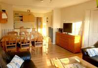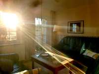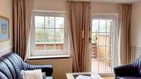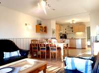 Dieses ist unsere hellste Ferienwohnung. Sie hat zur Garten- und Balkonseite eine große Fensterfront, die die ganze Sonne hereinlässt!