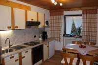 In der Küche finden Sie einen 4-Platten-Elektroherd mit Backofen, Kühlschrank incl. Gefrierfach, Mikrowelle, Kaffeemaschine, Wasserkocher, Toaster.