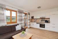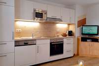 In allen Ferienwohnungen Geschirrspüler, E-Herd und Backofen, Mikrowelle, Wasserkocher, Toaster, Kaffeemaschine, Geschirrtücher