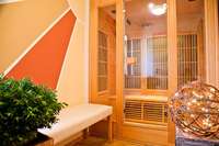 Im Haus gibt es eine Sauna, Solarium und Fitnessgeräte.