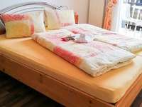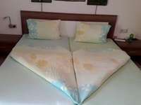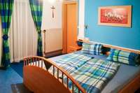 Drei Zimmer sind komplett behindertengerecht eingerichtet, sogar Pflegebetten gibt es bei uns im Haus. Ein Lift führt Euch zu den Zimmern im 1. Stock. Insgesamt verfügen wir über elf Gästezimmer und eine Ferienwohnung (zwei Schlafzimmer, Küche, Bad).