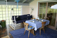 großer Ostbalkon mit Sitzgelegenheit, Kinderschaukel und Hollywoodschaukel