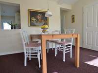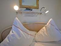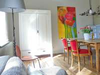 Die dritte Ferienwohnung Silbermöwe im Herrenhaus ist zugleich die geräumigste. Bis zu fünfeinhalb Gäste finden hier einen kuscheligen Platz. Und zum Essen und klönen treffen sich alle gemeinsam am großen Esstisch. In der Sofaecke lässt es sich gut lümmeln und lesen und vielleicht wird das ja ein neuer Lieblingsplatz. Zusammen sein und doch ausreichend Platz für eigene Bedürfnisse. Das sind die Vorzüge mit vier Schlafzimmern in dieser hellen und geschmackvollen Wohnung.