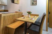 Unsere Wohnung Fichtenschlag bietet ihnen ein großes Schlafzimmer, sowie Küche mit Essecke und auch ein Bad. Außerdem steht ihnen eine Terrasse in Richtung Waldrand zur Verfügung.