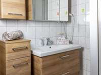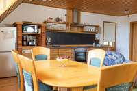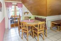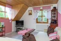 Unsere Wohnung Landhaus erstreckt sich über zwei Etagen. Sie liegt frei über der Garage. Es gibt zwei große Schlafzimmer, weshalb sie sich perfekt für Familien eignet.