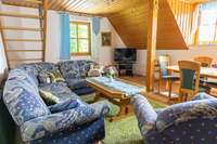 Unsere Wohnung Eichengrund liegt im zweiten OG. Sie verfügt über ein Eltern- und ein Kinderschlafzimmer und ist somit gut für Familien geeignet. Außerdem hat sie einen Balkon mit Sitzgelegenheit.