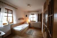 Das Doppelzimmer verfügt über ein Doppelbett, sowie ein Badezimmer und liegt im 1. OG. Ein Balkon gehört ebenfalls zur Wohnung.