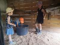 Die Kinder können jederzeit zu den Tieren im Streichelzoo und abends beim Füttern der großen Tiere helfen.