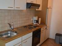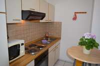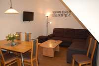 Die Ferienwohnung 4 hat im Erdgeschoß 1 Wohnzimmer mit kompletter Küchenzeile und 1 Badezimmer. Im Obergeschoß ist ein offener Schlafraum mit 1 Doppelbett und 1Einzelbett. Ein weiteres Bett kann gestellt werden.