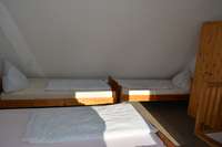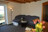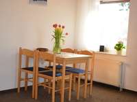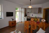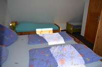 Die Ferienwohnung 3 verfügt über zwei getrennte Schlafräume (1 x Doppelbett und 2 Einzelbetten) im Obergeschoß. Im Erdgeschoß befinden sich 1 Wohnzimmer mit einem kompletten Küchenblock sowie Bad und WC.
