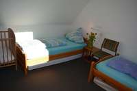 Die Ferienwohnung 5 verfügt wie die Ferienwohnung 3 über 2 getrennte Schlafräume, ist jedoch etwas größer. Es können noch 1 Zustell- und 1 Kinderbett aufgestellt werden, außerdem ist eine Wickelkommode vorhanden.
