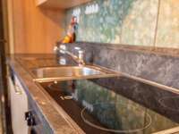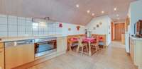 Spülmaschine, Kühlschrank mit Gefrierfach, Elektroherd mit Backröhre und Ceranfeld, Kaffeemaschine, Wasserkocher, Toaster, Handrührgerät, Brotschneider, Haarfön