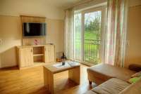 Auf den 75 m² unserer Wohnung Landlust kommt man schnell in Urlaubsstimmung. Auf der südseitigen Terrasse kann man die Sonne genießen und von den Walderdbeeren naschen. Da sich die Wohnung im Erdgeschoss befindet, ist sie besonders für Familien mit Kindern oder Senioren geeignet.