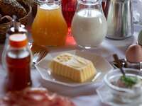 Im Sommer genießen Sie Liegewiesen, Äcker, Gärten, Wiesen, Obstbäume, weidende Kühe und das liebevoll zubereitete Frühstück auf der Panoramaterasse