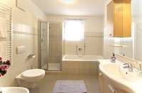 • Zwei komfortabel eingerichtete Badezimmer mit WC, Dusche, Badewanne, Bidet und Waschbecken