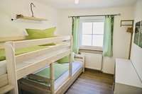 - ein Schlafzimmer mit Etagenbett und Möglichkeit eines Beistellbettes