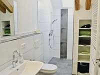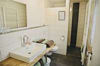- modernes Badezimmer mit begehbarer Dusche, WC, Handtuchheizkörper, Haartrockner, Hand- und Duschtücher (Für jeden Gast stellen wir Ihnen pro Woche ein Handtuch und ein Duschtuch zur Verfügung)