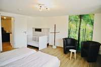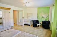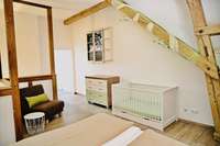 In den Elternschlafzimmern mit 2,20 m Bettenlänge finden selbst “Große” genügend Platz. Auch die „Kleinen“ sind bei uns sehr willkommen - unsere Kinder, Marilena und Aaron, freuen sich bereits auf viele neue Bekanntschaften! In jeder Wohnung steht ein Babybett, Wickelauflage, Hochstuhl und – wo nötig – ein Treppenschutzgitter bereit.