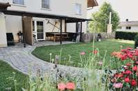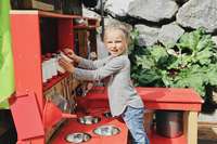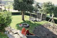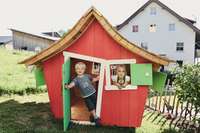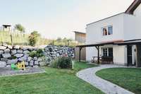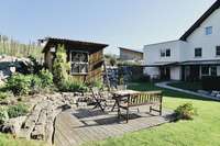 Im Garten hat jede Wohnung eine separate Sitzgelegenheit; ebenfalls kann der Spielplatz mit Sandkasten, Rutsche, Trampolin, Schaukel, Kiesplatz, Spielhäuschen und Matschküche genutzt werden.