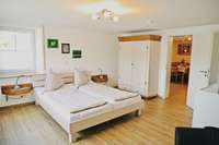 - ein geräumiges Schlafzimmer mit Doppelbett (2,20 m Bettlänge) und Babybett