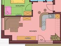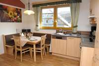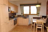 - Wohnküche mit Mikrowelle, E-Herd mit Backrohr, Geschirrspüler, Kaffeemaschine, Wasser- und EierkocherDie Ferienwohnung Sonnenblume ist mit zwei getrennten Schlafzimmern bestens für 4 bis 5 Personen geeignet.