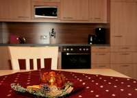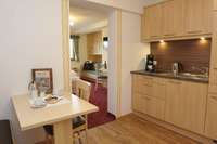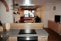 - Wohnküche mit Mikrowelle, E-Herd mit Backrohr, Geschirrspüler, Kaffeemaschine, Wasser- und Eierkocher