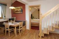 - Wohnküche mit Mikrowelle, E-Herd mit Backrohr, Geschirrspüler, Kaffeemaschine, Wasser- und EierkocherDie Ferienwohnung Speiereck mit 2 getrennten Doppelschlafzimmern auf 2 Etagen mit jeweils Dusche und WC adaptiert eignet sich für 4 bis 5 Personen.