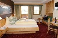 Das heimelige Zirbenzimmer, gefertigt aus hofeigenen Zirbenholz verfügt über ein Doppelbett und der Möglichkeit von 2 Zusatzbetten, sowie einer Teeküche mit E-Herd und Kühlschrank.
