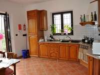 Wohnküche (17 m2) mit Essecke für 6 Personen, ausgestattet mit Kühl- und Gefrierschrank, Geschirrspüler, Ofen und Magnetron.