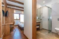 Im Appartement verfügen Sie über je eine Dusche/WC pro Zimmer. Jedes der 3 Schlafzimmer hat einen Ausgang direkt ins Freie - so kommen Sie direkt aus Ihrer Unterkunft auf die Skipiste bzw. im Sommer raus auf die Wiese. Kinder lieben den Bereich vor dem Haus um zu spielen und Schneemänner zu bauen - überzeugen Sie sich selbst davon! Weiters ist jedes Zimmer ausgestattet mit Flat-TV mit Kabel-Empfang, Zimmersafe und gratis WLan.Ferienwohnung 20 - für 4-6 Personen mit Zugang direkt auf die Piste