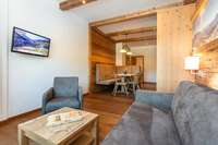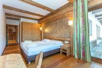 Die Ferienwohnung 10 befindet sich im ebenerdigen Untergeschoss und besteht aus insgesamt 3 separaten Räumen - 2 Doppelzimmer, jeweils mit Dusche/WC und einem Wohnzimmer mit Küche, Essecke und Sofalandschaft, welches optional auch mit 2 Personen belegt werden kann. Die familienfreundliche Ferienwohnung ist die perfekte Wahl für Familien mit Kindern oder befreundete Pärchen, da sich jeder in seinen privaten Bereich zurück ziehen kann und so ungestört vom Rest der Gruppe ist. Für Kinder ein Highlight Sommer wie Winter: Man gelangt durch die Balkontüre direkt ins Freie und kann vor dem Appartement spielen, herum tollen oder einen Schneemann bauen. Mama und Papa entspannen sich in der Zwischenzeit im Wohnzimmer und haben die Kleinen trotzdem immer im Blick!